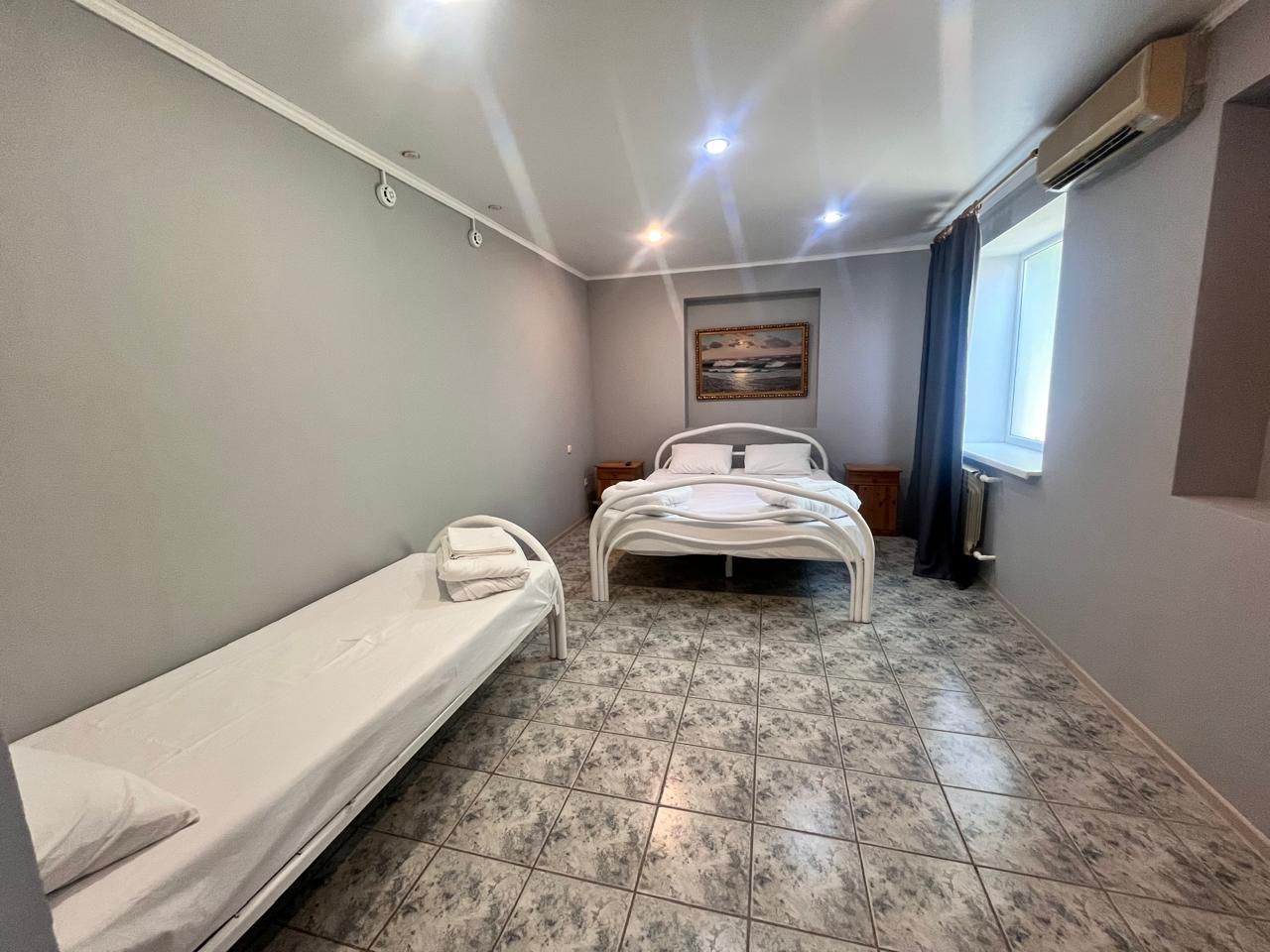 Просторный семейный 3-х местный номер,с возможностью предоставления дополнительных мест подойдет для размещения большой семьи. Имеет выход на большую террасу, с которой открывается вид на Таганрогский залив. На террасе имеются столики, где вы сможете проводить свой досуг. В каждом номере есть: собственная ванная комната, холодильник, телевизор, полотенца, сплит-система, чистое постельное белье, электрочайник с чайными принадлежностями, бесплатный Wi-Fi. Доп.места: Взрослый с 12 лет считается как взрослый: 1000 руб. Детский с 7-11 лет включительно: 500 руб. До 6 лет: бесплатно, но если требуется доп.место: 500р