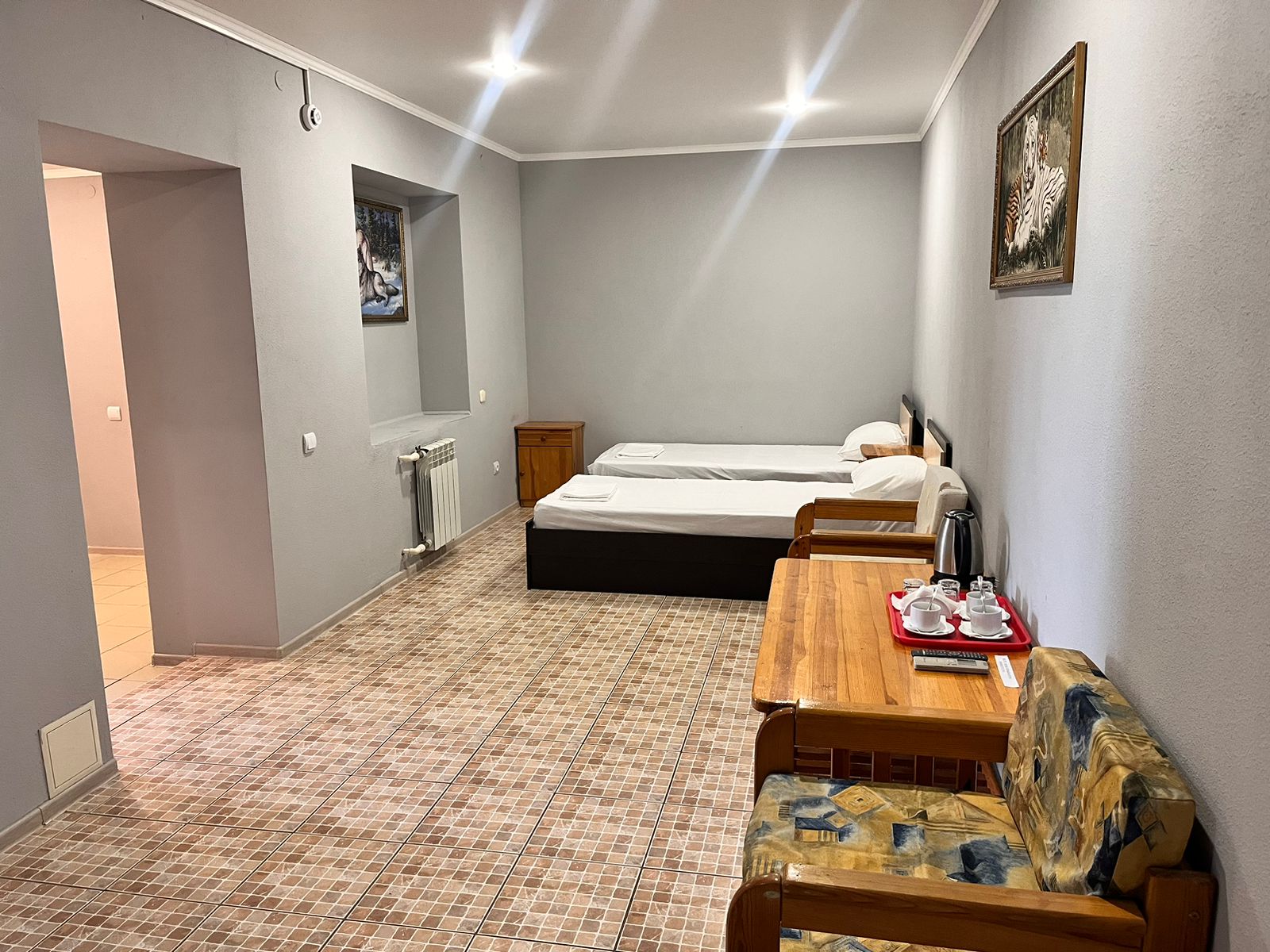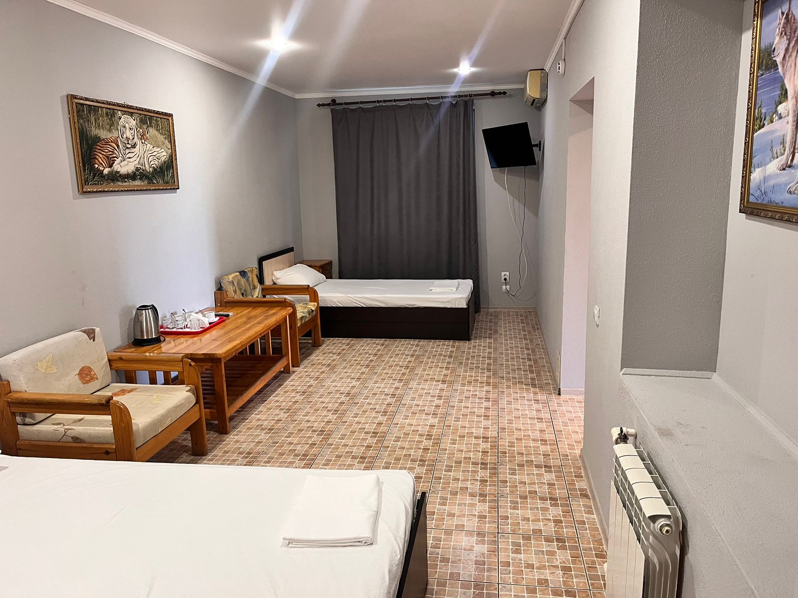 Номер с 3-мя раздельными кроватями, с возможностью предоставления дополнительных мест. В каждом номере есть: собственная ванная комната, холодильник, телевизор, полотенца, сплит-система, чистое постельное белье, электрочайник с чайными принадлежностями, бесплатный Wi-Fi. Доп.места: Взрослый с 12 лет считается как взрослый: 1000 руб. Детский с 7-11 лет включительно: 500 руб. До 6 лет: бесплатно, но если требуется доп.место: 500р