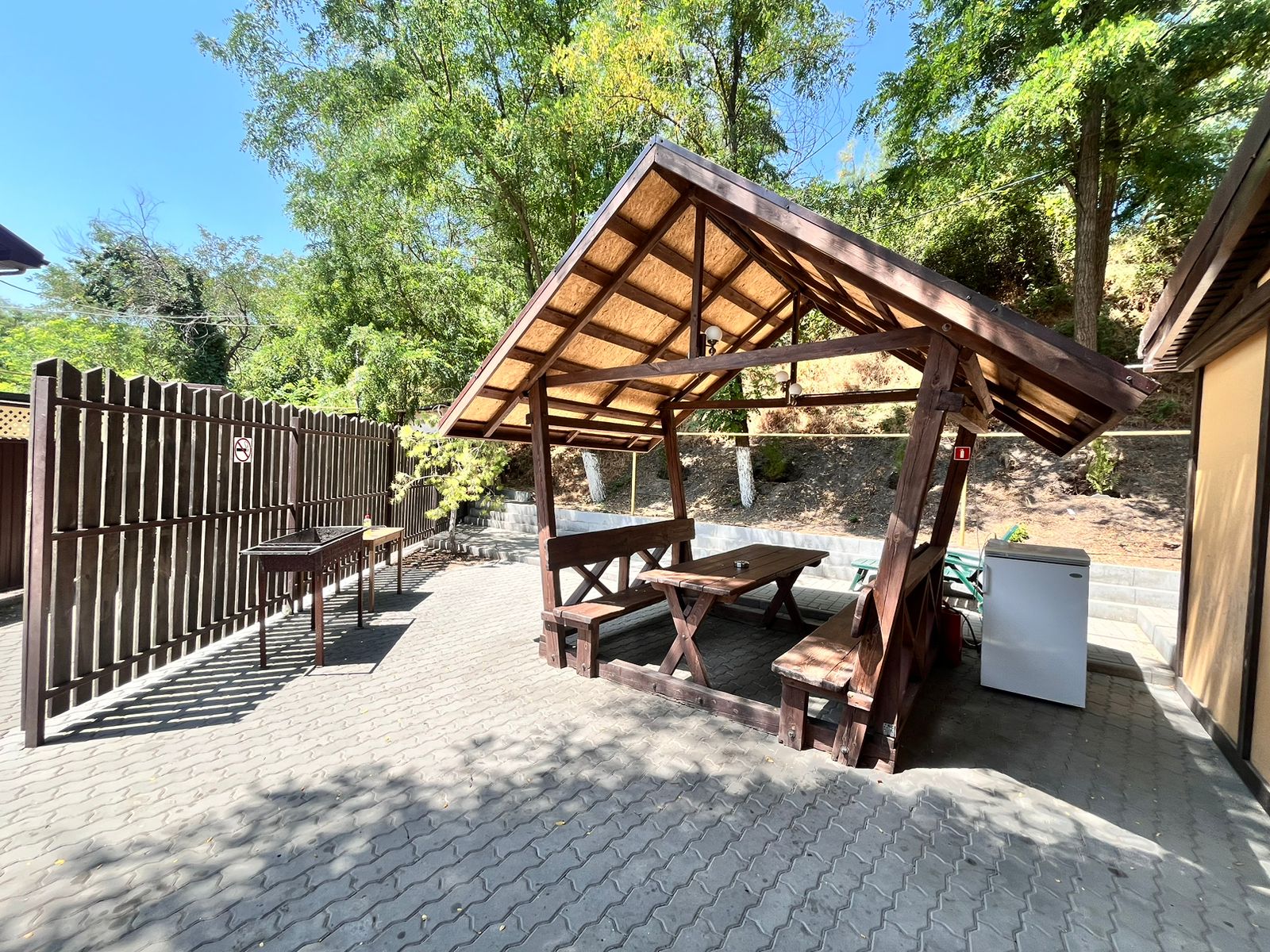 Будний день: До 4 чел 2 000 руб., свыше 4 человек за каждого человека 450 руб. Выходной день: До 4 чел 2 500 руб., свыше 4 человек за каждого человека 600 руб. Размещение до 8 человек С 7 до 11(вкл.) лет — тариф «Детский» - стоимость 200 руб. Размещение в беседках с 10.00 до 22.00 В стоимость аренды беседок входит: Беседка с посадочными местами, детская площадка, мангальная зона, волейбольная площадка, возле каждой беседки свой холодильник.
