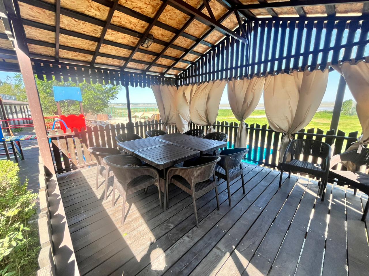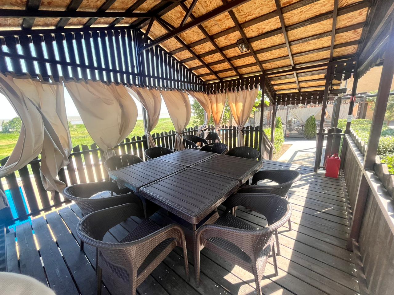 Будний день и выходной: До 4 человек 3 500 руб Свыше 4 человек 800 руб. за каждого Размещение до 10 человек С 7 до 11(вкл.) лет — тариф «Детский» - стоимость 200 руб. Размещение в беседках с 10.00 до 22.00 В стоимость аренды беседок входит: Беседка с посадочными местами, детская площадка, мангальная зона, волейбольная площадка, возле каждой беседки свой холодильник.